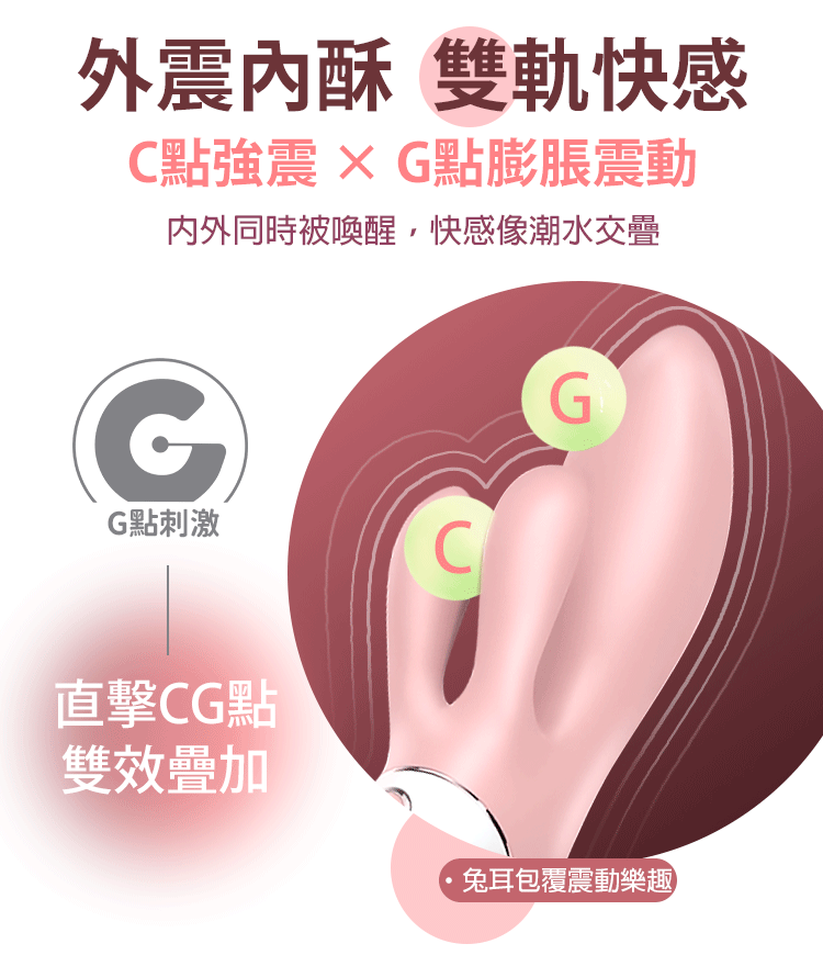 經典雙耳設計,細膩震動環抱陰蒂,與膨脹主體完美協奏。