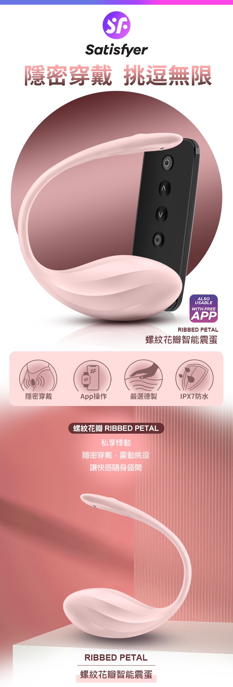 品名:Satisfyer Ribbed Petal|螺紋花瓣智能震跳蛋 粉